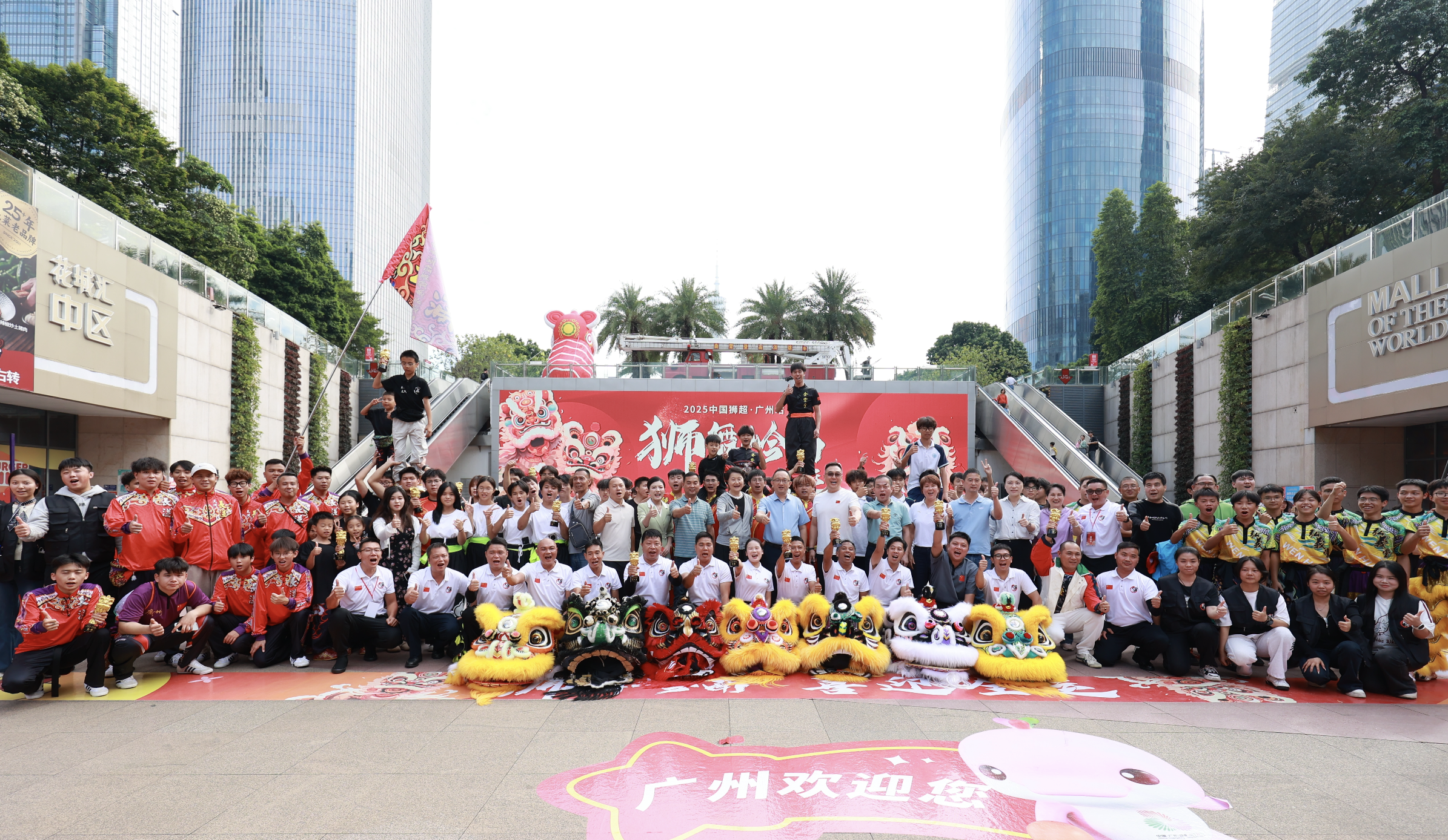 随后举行了总决赛开锣仪式,主礼嘉宾共同鸣锣,宣布2025中国狮超嘉年华(广州站)总决赛正式开始。