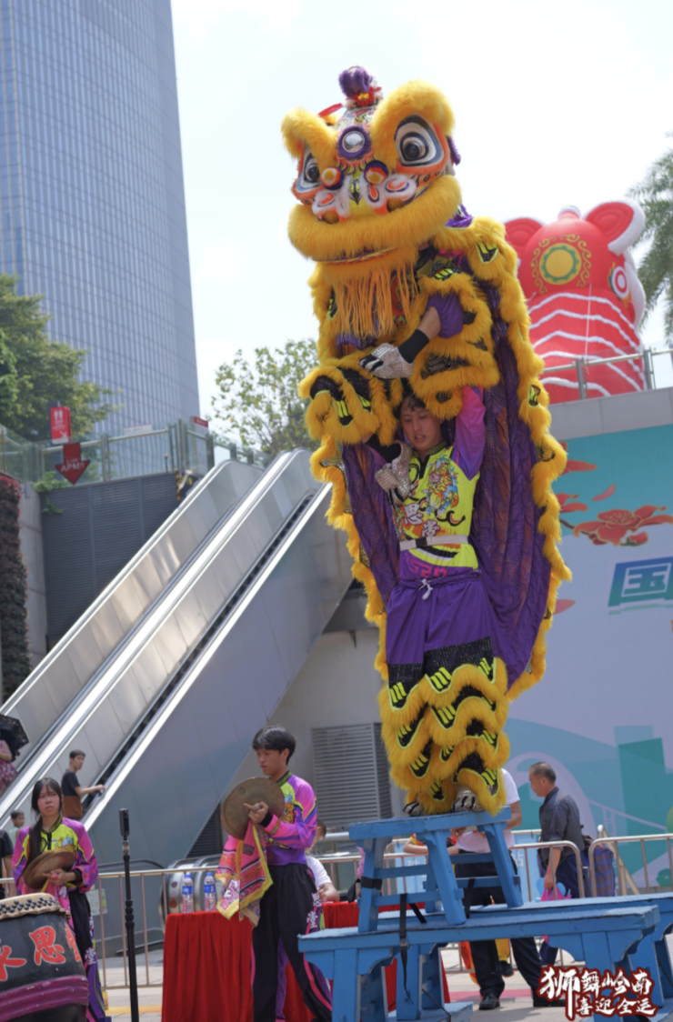 随着锣声响起,两支狮队展开巅峰对决。腾挪跳跃间,雄狮英姿飒爽、气势如虹,赢得观众阵阵喝彩。经过激烈角逐,天河区冠军狮队以出色的技艺和默契的团队配合成功夺得总冠军,点燃全场激情。