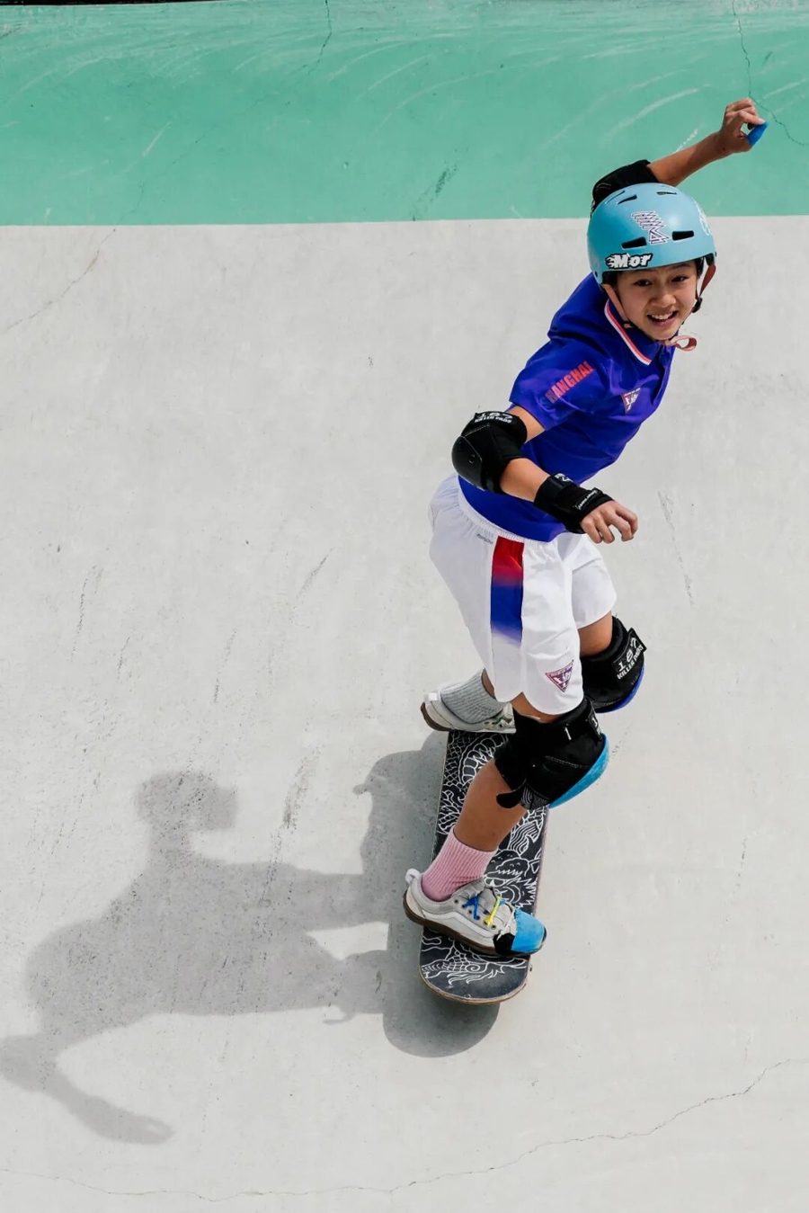 有时候,曹艺桓爸爸会想起女儿在SMP滑板公园的那段时光。那时,很多滑板高手都乐意教菜菜几招,运营滑板公园的团队中,还有一位早期的全运会冠军、如今的小轮车教练,菜菜从他那里系统地学习了滑板的基本技巧和原理。正是那段时间的熏陶,让菜菜和她的家庭下定决心,投入滑板训练直至今天。
